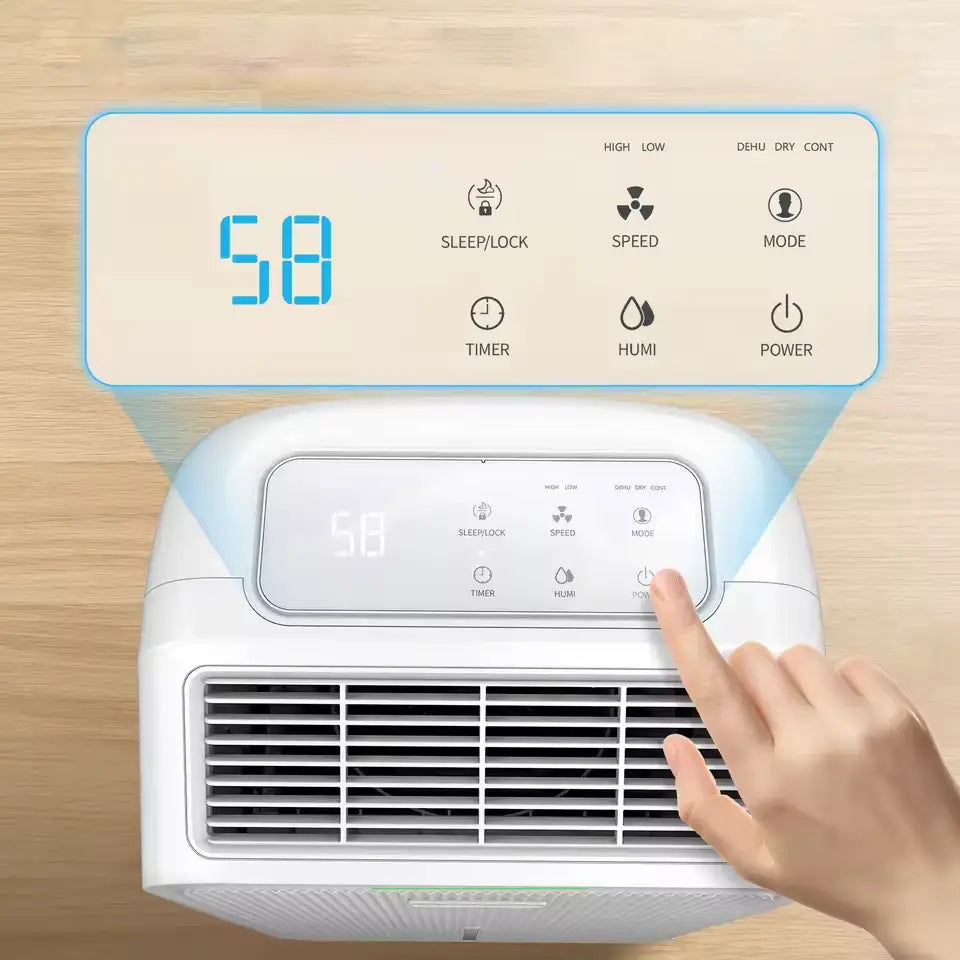 Par l’écran LED de l’appareil, gardez un œil en temps réel sur la température, le taux d’humidité exact de votre intérieur, la puissance du ventilateur et même sur le niveau du réservoir d’eau.