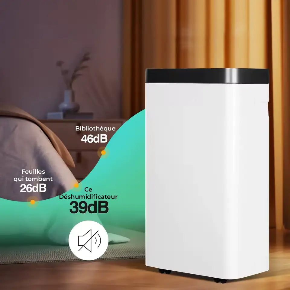 Grâce à son système dernière génération de réduction de sonore, notre déshumidificateur d'air fonctionne avec seulement 39 dB.